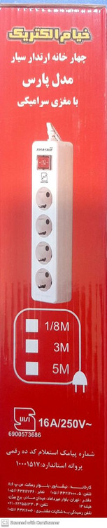چند راهی برق (4 پریز سیار) ارتدار 2 متری مدل پارس خیام الکتریک