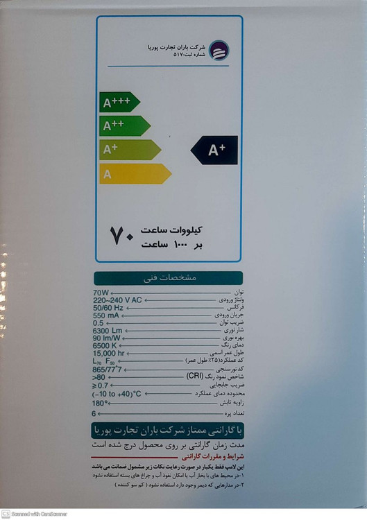 لامپ 70 وات لوتوس 6 پر مهتابی ایران زمین E27