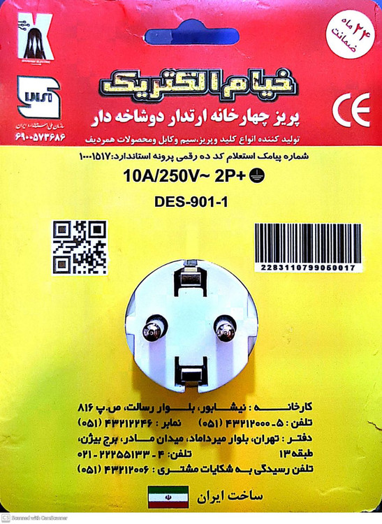پریز 4 خانه دوشاخه دار مدل سهند خیام الکتریک