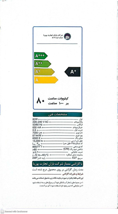لامپ ال ای دی 80 وات ایران زمین مدل استوانه ای مهتابی پایه E27