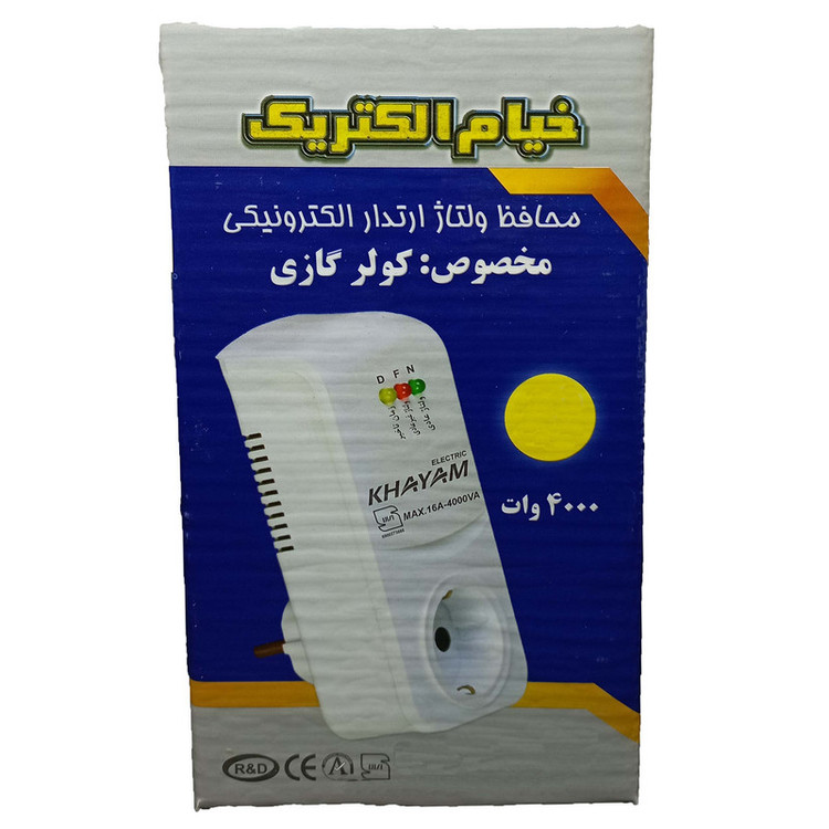 محافظ ولتاژ ارت دار الکترونیکی مخصوص کولر گازی خیام الکتریک با فرکانس ورودی 50 هرتز و حداکثر توان خروجی 4000 وات یک محافظ قابل اعتماد جهت محافظت از کولر های گازی در برابر نوسانات برق می باشد. محدوده ولتاژ کارکرد این محافظ 170 تا 255 ولت می باشد و حداکثر جریان خروجی آن 16 آمپر می باشد . برند خیام الکتریک یکی از برندهای نام آشنای صنعت برق در ایران می باشد که با تولید این محافظ کمک زیادی به پیشگیری از سوختن و خرابی کولر های گازی کرده است .
