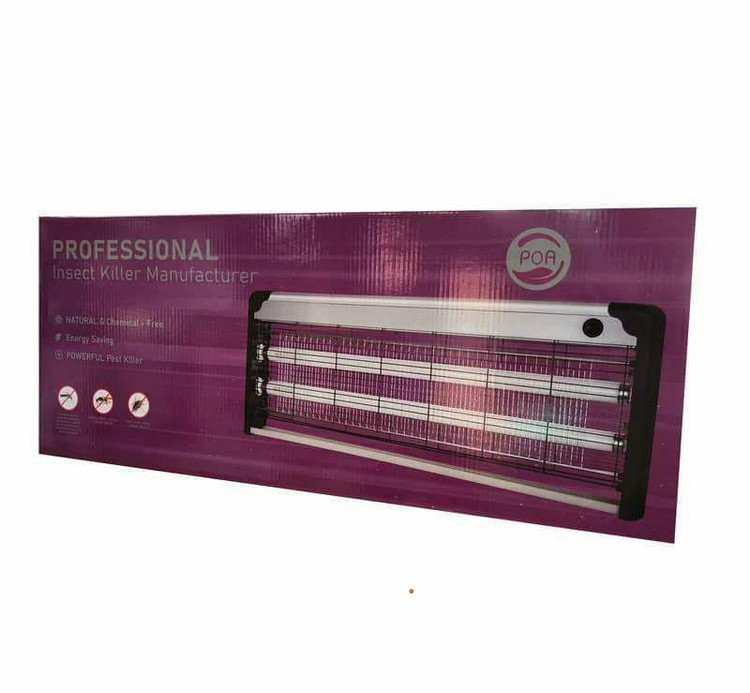 ابعاد این حشره کش 65 سانتی متر طول 26 سانتی متر عرض و 6 سانتی متر پهنا است.دارای دو لامپ 40 وات UV جهت جذب حشرات است.قابل استفاده به صورت رومیزی و آویزان می باشد.