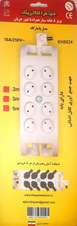 رابط ۸ خانه فیوزدار خیام الکتریک مدل پاسارگاد با کابل1/8 متری، دارای طراحی ایمن و مقاوم است. این محصول با فیوز حفاظتی، از دستگاهها در برابر نوسانات برق محافظت کرده و با داشتن ۸ پریز، امکان اتصال همزمان چند وسیله را فراهم میسازد. کابل1/8 متری آن نیز راحتی و آزادی عمل بیشتری به کاربر میدهد.
