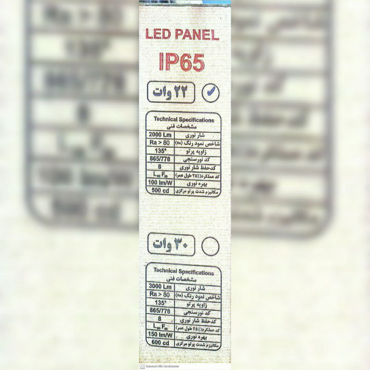 بازه توان مصرفی: 22 وات