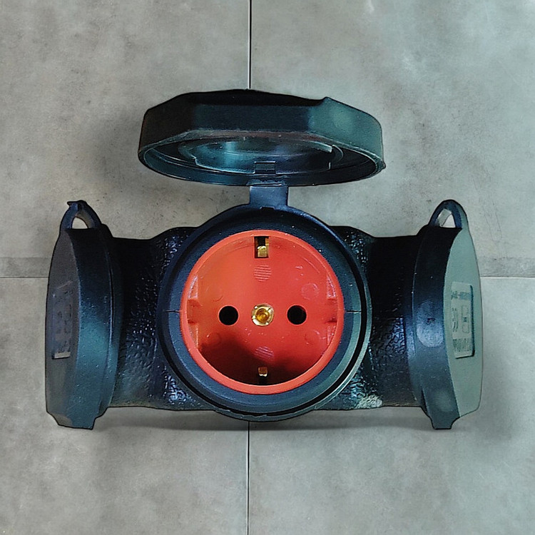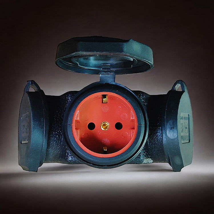 سه عدد پریز خروجی ارت دار با درپوش محافظ لاستیکی - بدنه بسیار مستحکم - گواهی IP 44 - مقاوم در برابر ضربه - مقاوم در محیطهای پرگرد و خاک